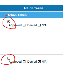 Checkboxes for Advisory Board Minutes PDF's are not alligned correctly in the Action Taken column